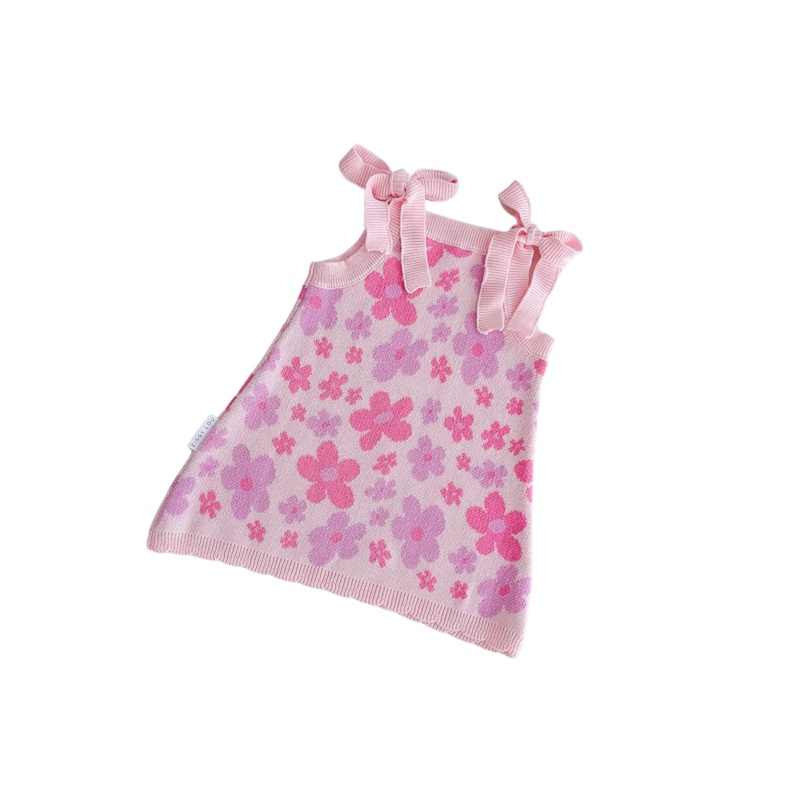 Knitted jacquard dress featuring our Cora floral design. Adjustable ties at shoulder for the perfect fit and scalloped hem detail. Mix and match with items from our Cora Collection.