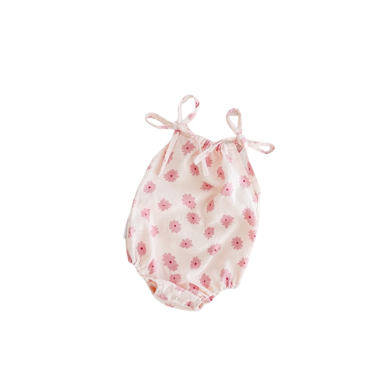 By Ziggy LouA lightweight linen blend romper featuring our Rosa printed design. Functional ties at shoulder and snap buttons at the crotch for easy on/off and nappy changes Please Note||| This is a digitally printed design. Each individual garment may have