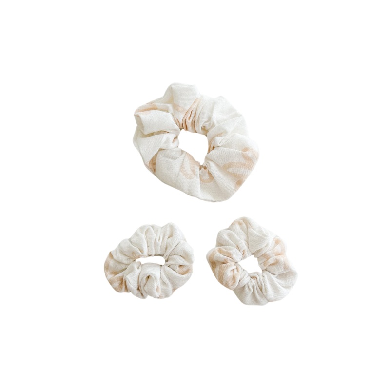 By Ziggy LouLightweight linen blend scrunchies in our August print.Mix and match with our Cappuccino + Gia Summer Collections.Size||| Small + Large available.Safety ||| Never leave baby unattended with Scrunchie on.Remove Scrunchie before sleeping.Care|||