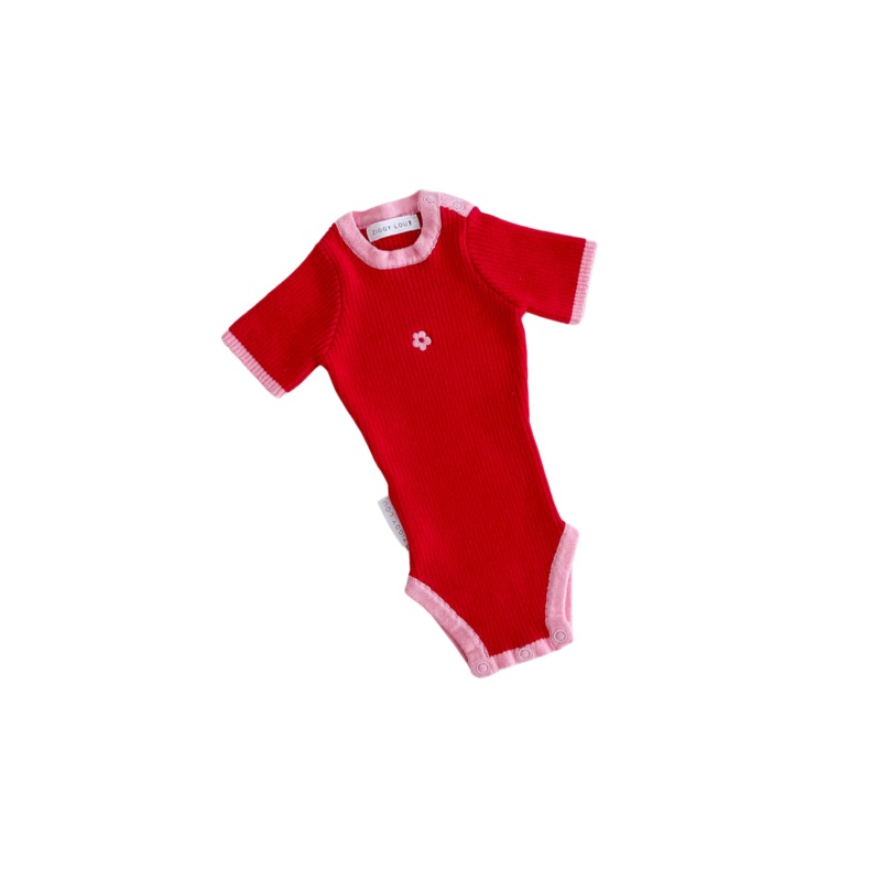 By Ziggy LouRibbed short sleeve bodysuit featuring scalloped edge binding detail in our Maeve colour. Functional press snaps at crotch for easy nappy changes and press snaps on shoulder for easy on/off. Mix and Match with items from our Rosa, Elodie, Maeve