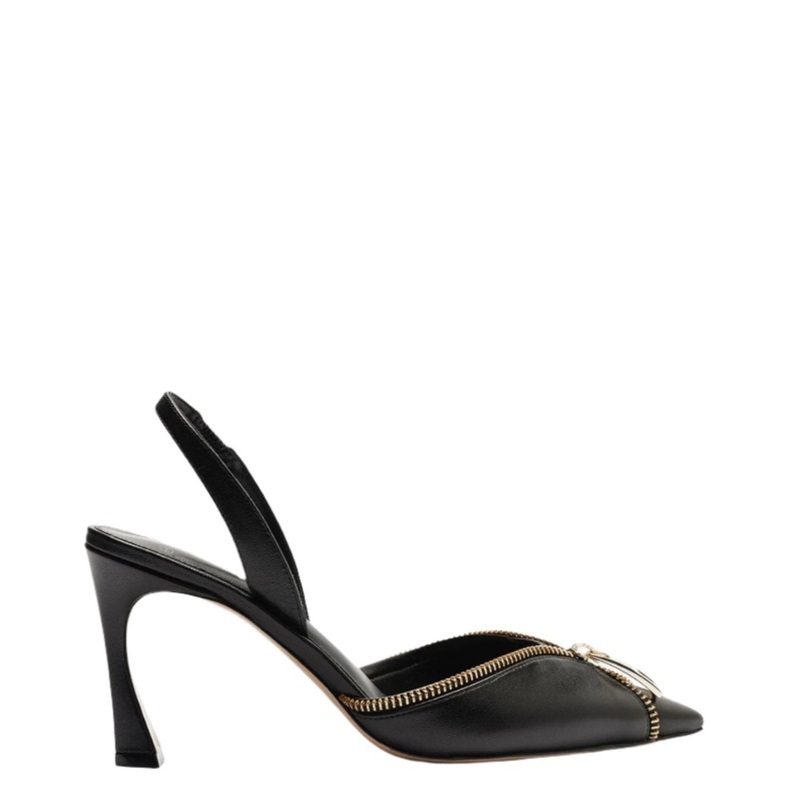 Founded in 2008, Alexandre Birman infuses each of his fine footwear collections with the spirit, sensuality, and sophistication of his Brazilian heritage. Beginning with thoughtful drawings, exceptional craftsmanship is the brands cornerstone, employing fine artisans, superior materials, and thoughtful design to create timeless, luxurious shoes, style after style. The architectural heel adds a touch of boldness, while the refined upper exudes an aura of sensuality in the Zoe. The incorporation of the zipper motif into the design brings further allure. With a sleek and classic pointy toe, the pump redefines elegance and modernity with a practical slingback.